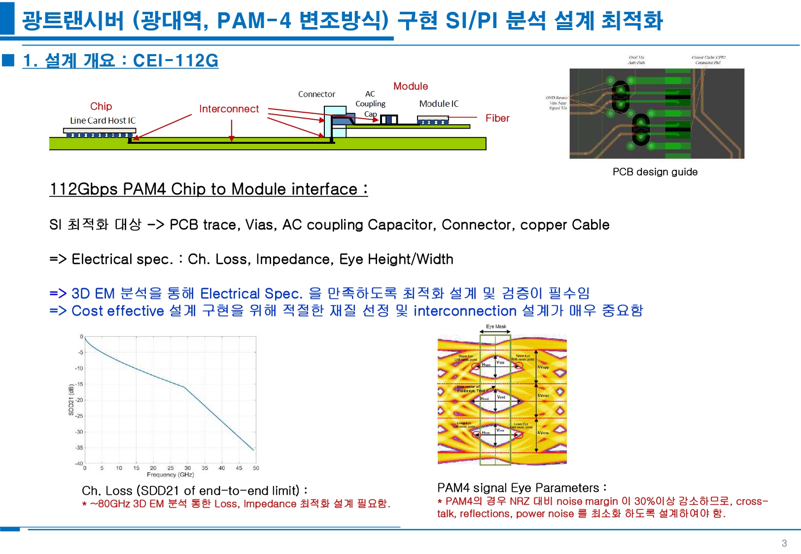 "최근 광트랜시버 제품의 대역폭이 커지면서 경험하지 못했던 SI (Signal Integrity)와 PI(Power Integrity) 문제로 개발사들의 고민이 많으며